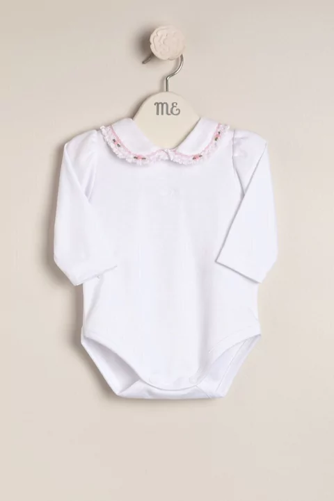 Body de algodón PIMA peruano. Bordado con smockee y flores rococó hechas a mano. Articulo: 36011409